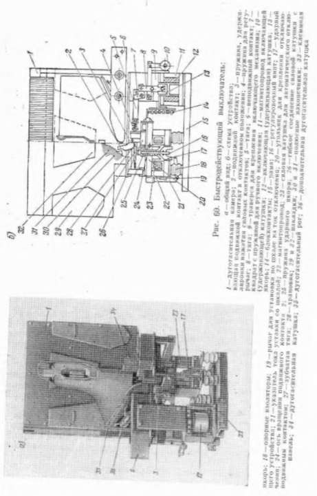 Возникающая в этот момент электрическая дуга выдувается магнитным потоком дугогасительных катушек в дугогасительную камеру. Дугогасительная камера / сделана из асбоцементных плит с внутренними перегородками.