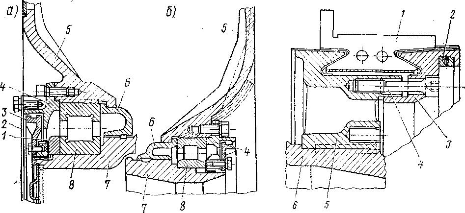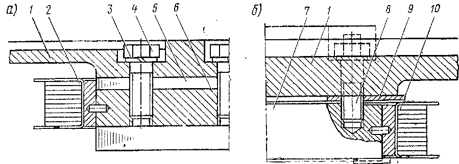 Рис. 143. Крепление главного (а) и дополнительного (б) полюсов к остову