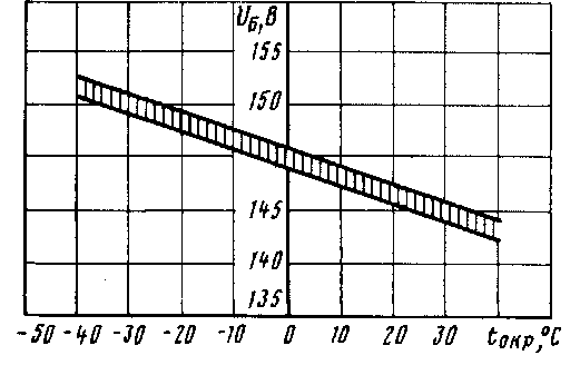 Рис. 239. Зависимости конечного напряжения заряда аккумуляторной батареи от температуры окружающей среды