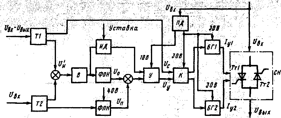 Рис. 251. Функциональная схема управления стабилизатора переменного напряжения: '