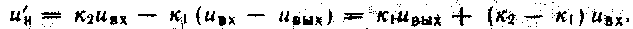 БУС содержит трансформаторы ТІ и Т2, первичные обмотки которых подключены соответственН9 параллельно силовым тиристорам 77/, Тт2 (см. рис. 250) и на вход стабилизатора. Выходное напряжение трансформатора 77 к\ («„-— "вцх) пропорционально напряжению на тиристорах, которое равно разности входного-и выходного напряжений системы. Выходное напряжение трансформатора Т2, равное /с2. ывх, пропорционально входному напряжению. Здесь кі, к2 — коэффи* циенты трансформации трансформаторов 77, Т2.