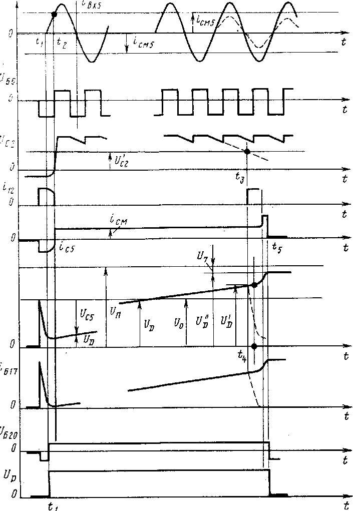 Рис. 253. Диаграммы напряжений и токов элементов БУС: