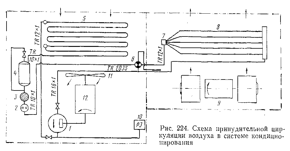 Рис. 223. Схема установки охлаждения в системе кондиционирования