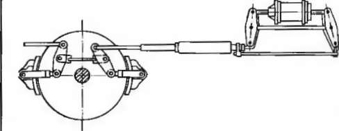 Храповое колесо жестко закреплено на шпинделе 14 и связано с гайкой 15, в которую ввернут конец тяги 17. Следовательно, при повороте храпового колеса гайка навинчивается на тягу, длина тяги уменьшается, зазоры между тормозными колодками и поверхностью бандажей (ободьев) колес выбираются, и ход штока тормозного цилиндра опять устанавливается в пределах нормы.