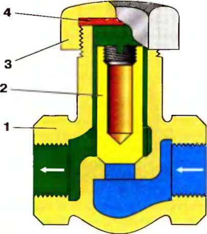 1 — корпус; 2 — клапан: 3 — крышка; 4 — прокладка