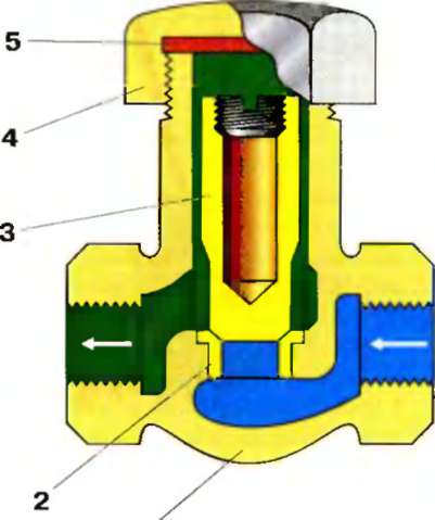1 — корпус; 2 — втулка (седло клапана); 3 — клапан;