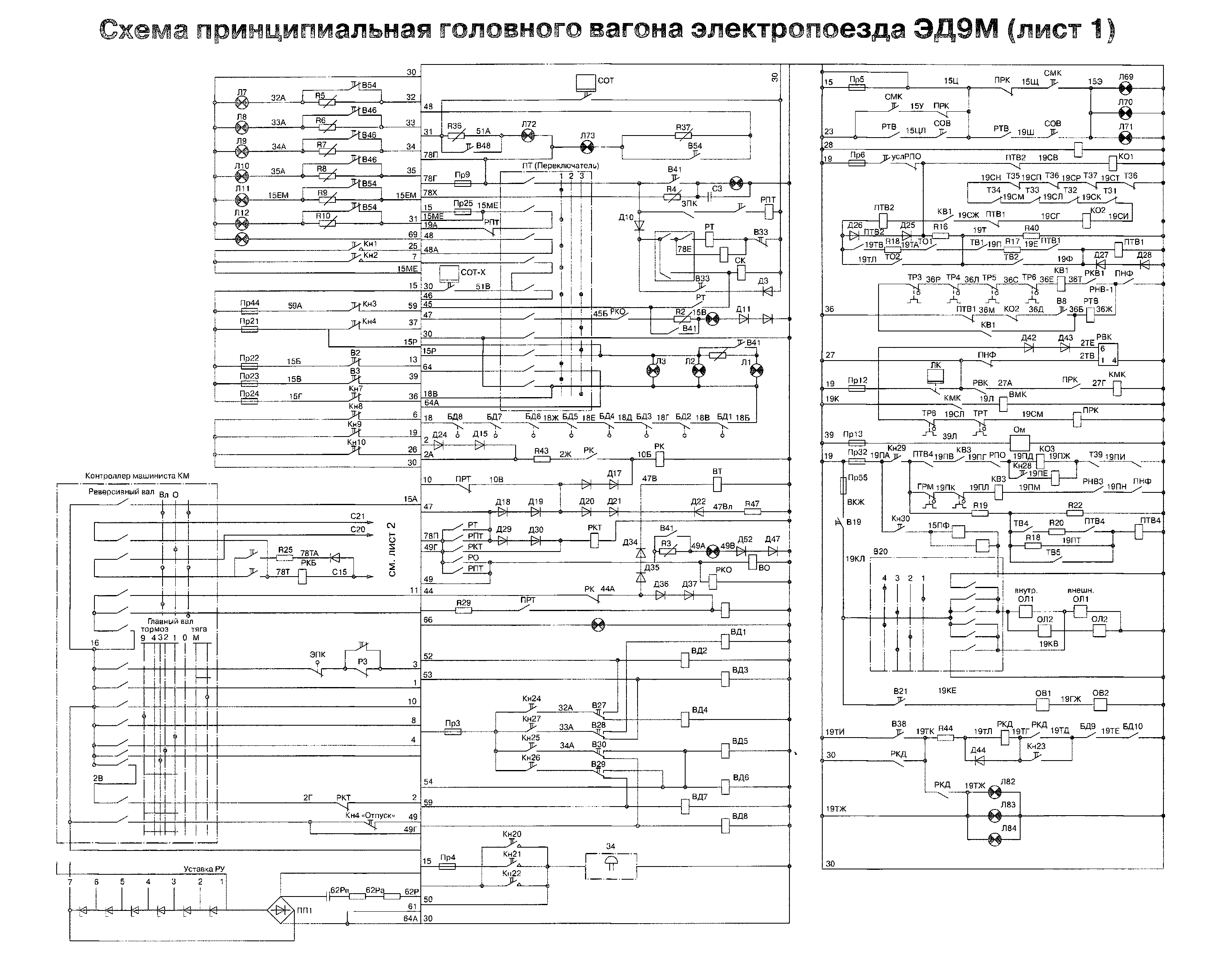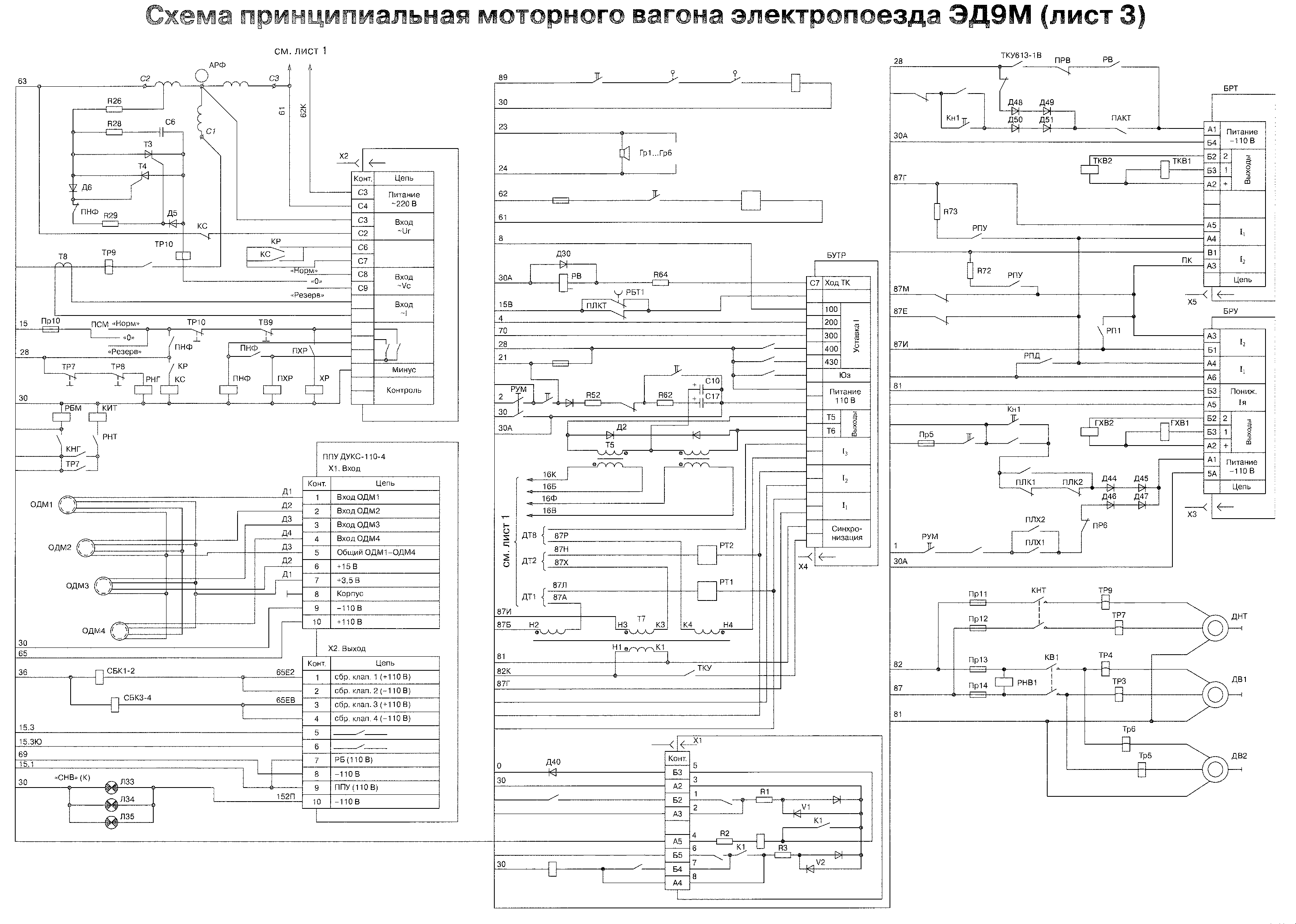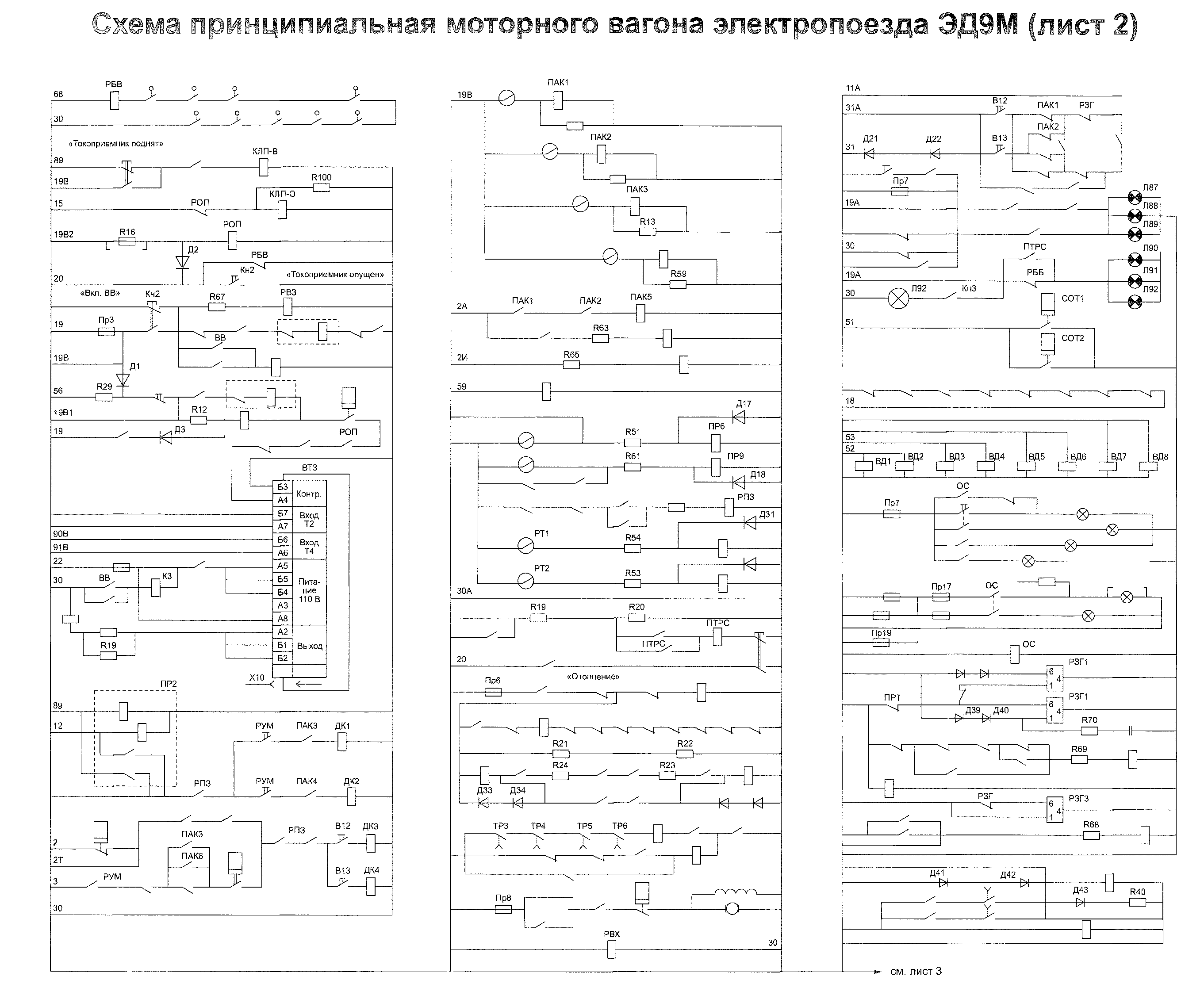 Схема принципиальная моторного вагона электропоезда ЭД9М (лист 1)