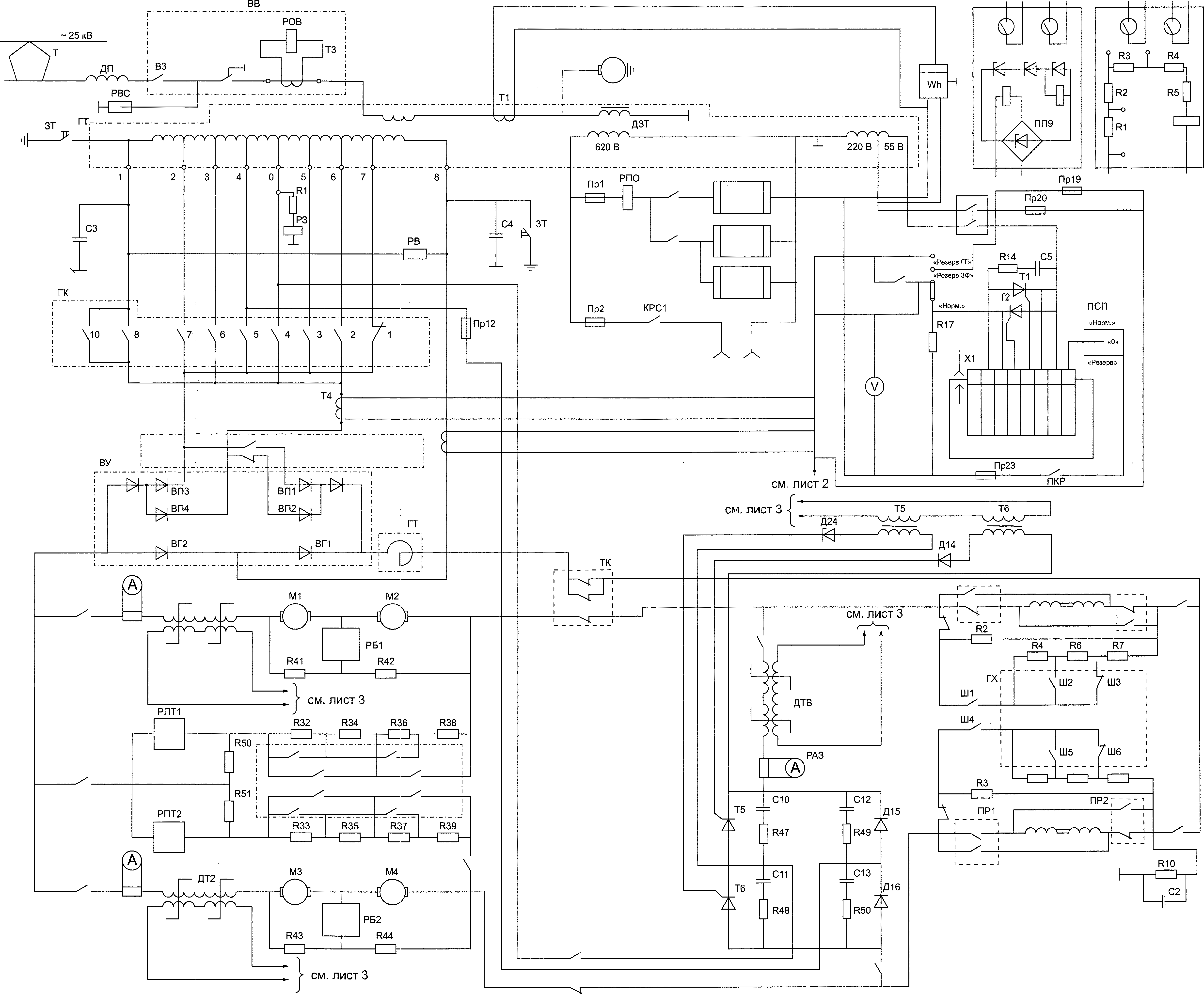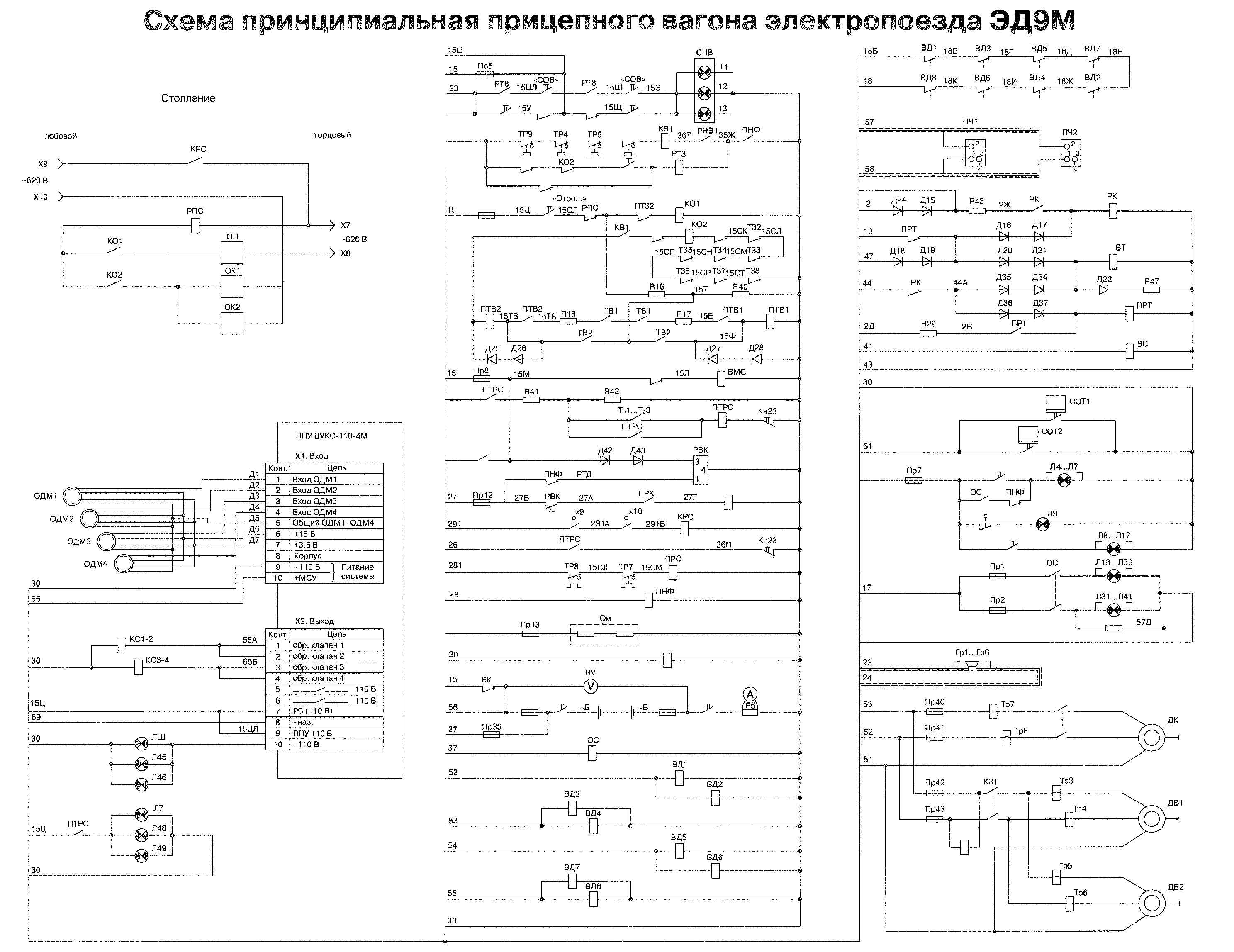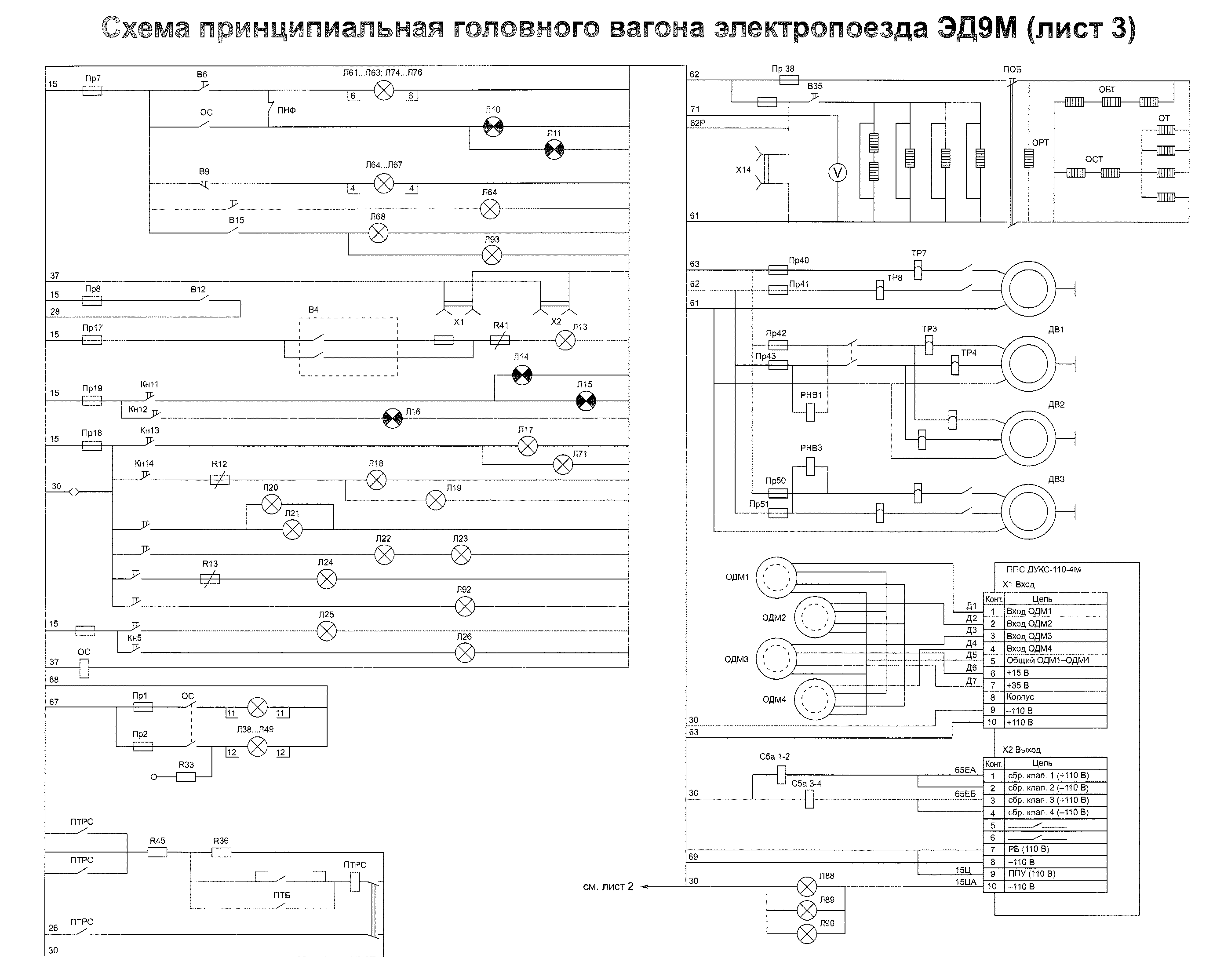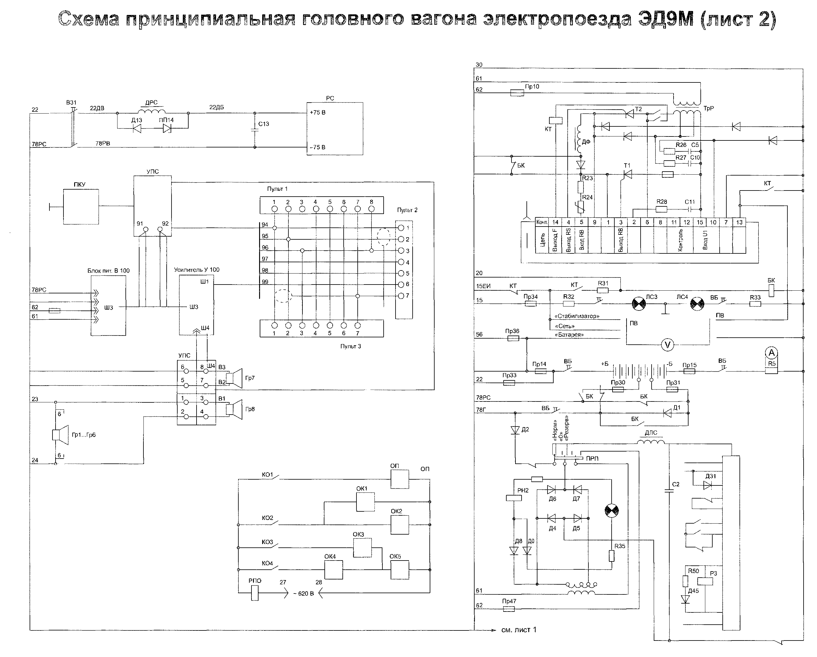Схема принципиальная моторного вагона электропоезда ЭД9М (лист 1)