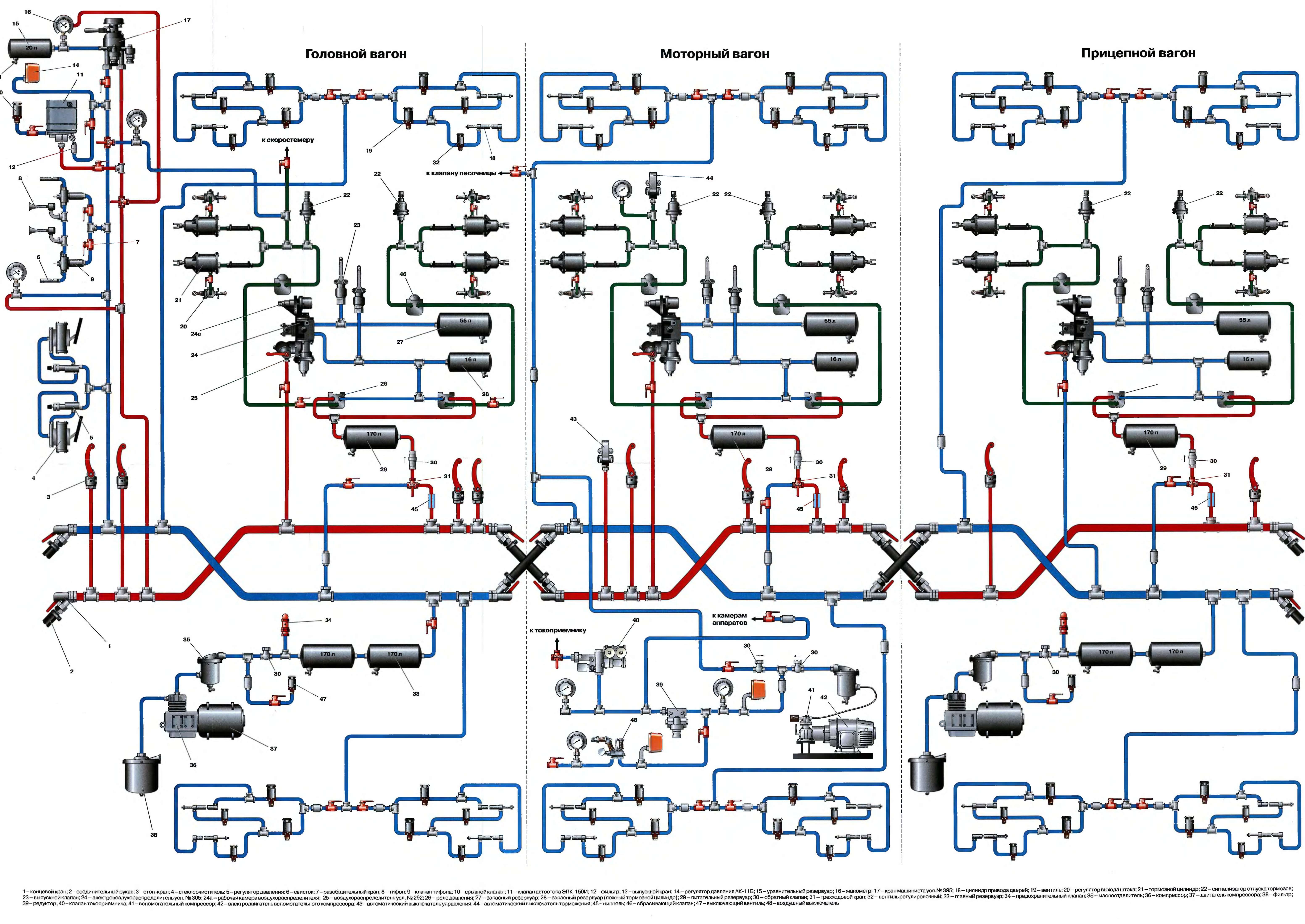 Схема пневматическая принципиальная электропоезда ЭД9М