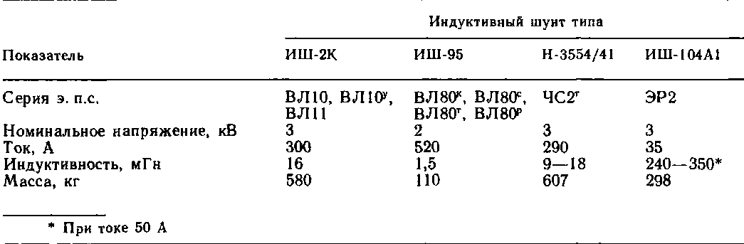 Индуктивные шунты. На электровозах и электропоездах постоянного и электровозах переменного тока для увеличения числа ходовых скоростных характеристик регулируют возбуждение тяговых двигателей, включая параллельно их об-
