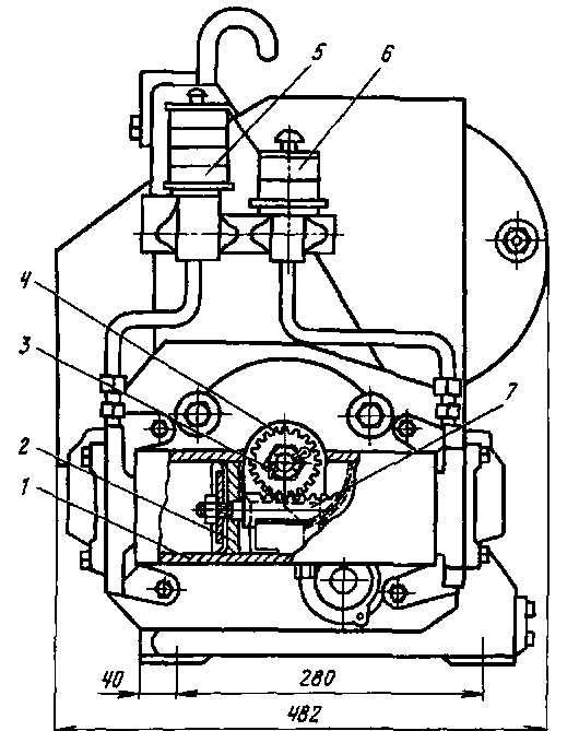 Две литые боковины корпуса соединены четырьмя стальными изолированными снаружи бакелитовой бумагой стержнями. К боковине прикреплены редуктор и кронштейн, на котором установлен пневматический привод. На боковине смонтировано блокировочное устройство. Привод выполнен по схеме рис. 175, а.