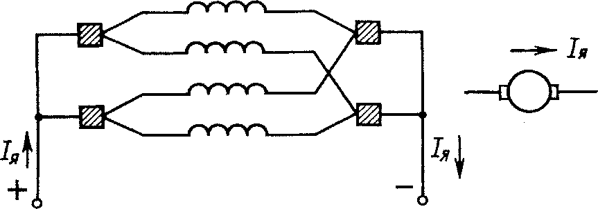 Рис. 37. Параллельные ветви петлевой обмотки якоря и обозначение в схеме