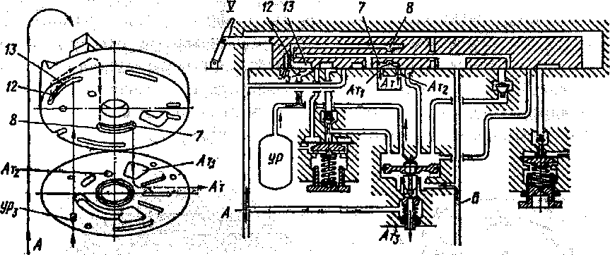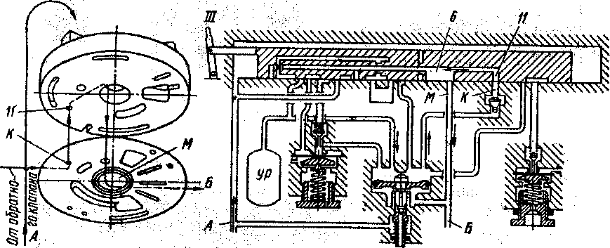 Золотник вращается вместе с ней вокруг своей оси относительно зеркала. Нижняя часть золотника — полированная, притертая к зеркалу поверхность, на которой имеются отверстия рфного сечения,выемки и каналы.
