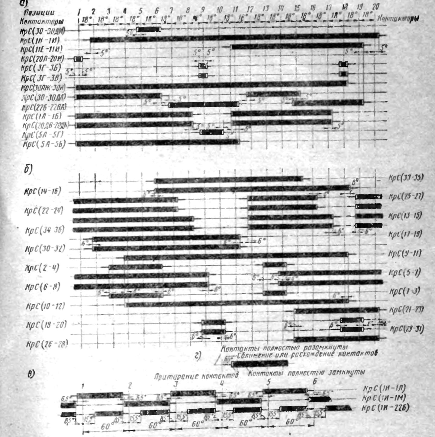 Рнс 43 Диаграмма включения кулачковых контакторов силового контроллера