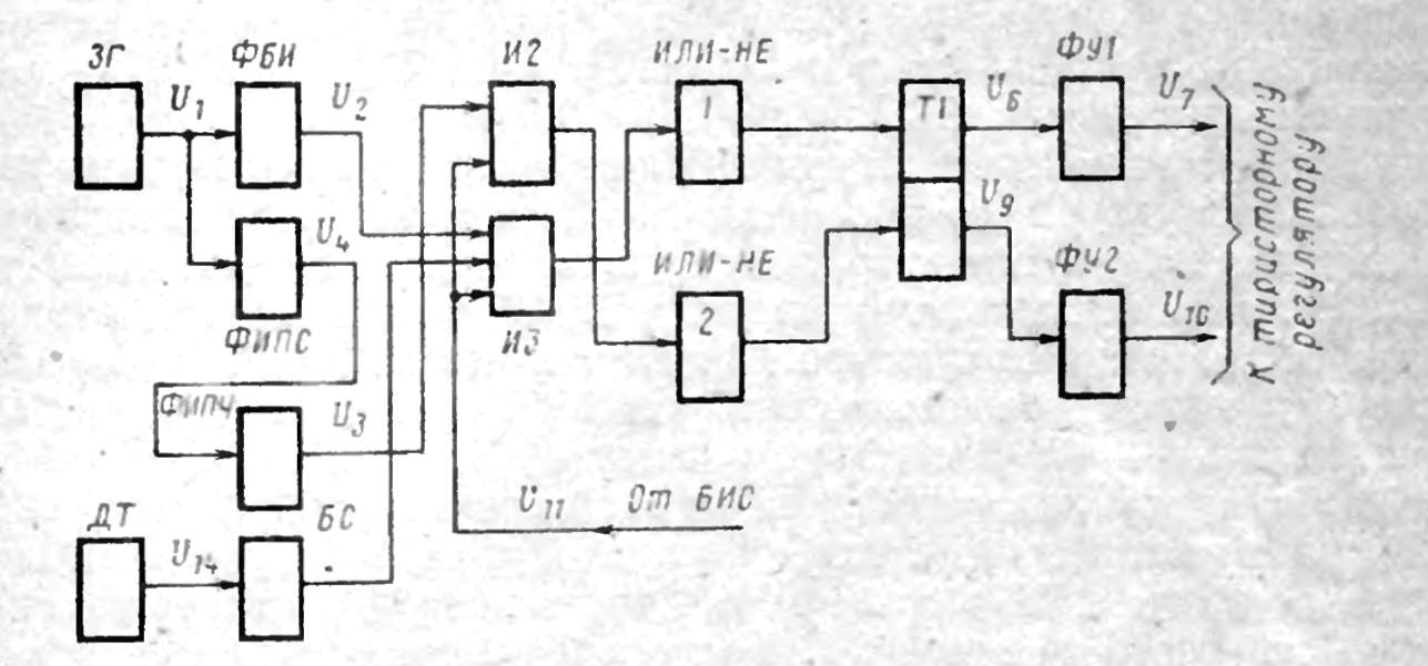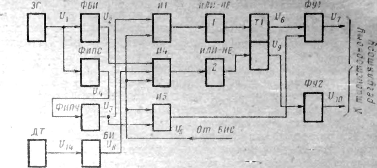 В состав блока формирователей импульсов БФИ входят: формирователь блокировочных импульсов ФБИ, формирователь импульсов постоянной частоты ФИПЧ и формирователь импульсов перемены структуры ФИ ПС. ФБИ формирует импульсы напряжения с/2, ФИПЧ — импульсы напряжения с/3, а ФИ ПС — импульсы напряжения и4.