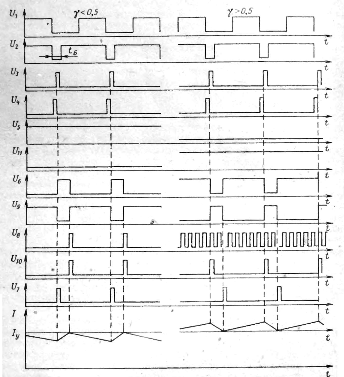 Рнс. СС. Диаграмма импульсов напряжении на виходе элементов САР