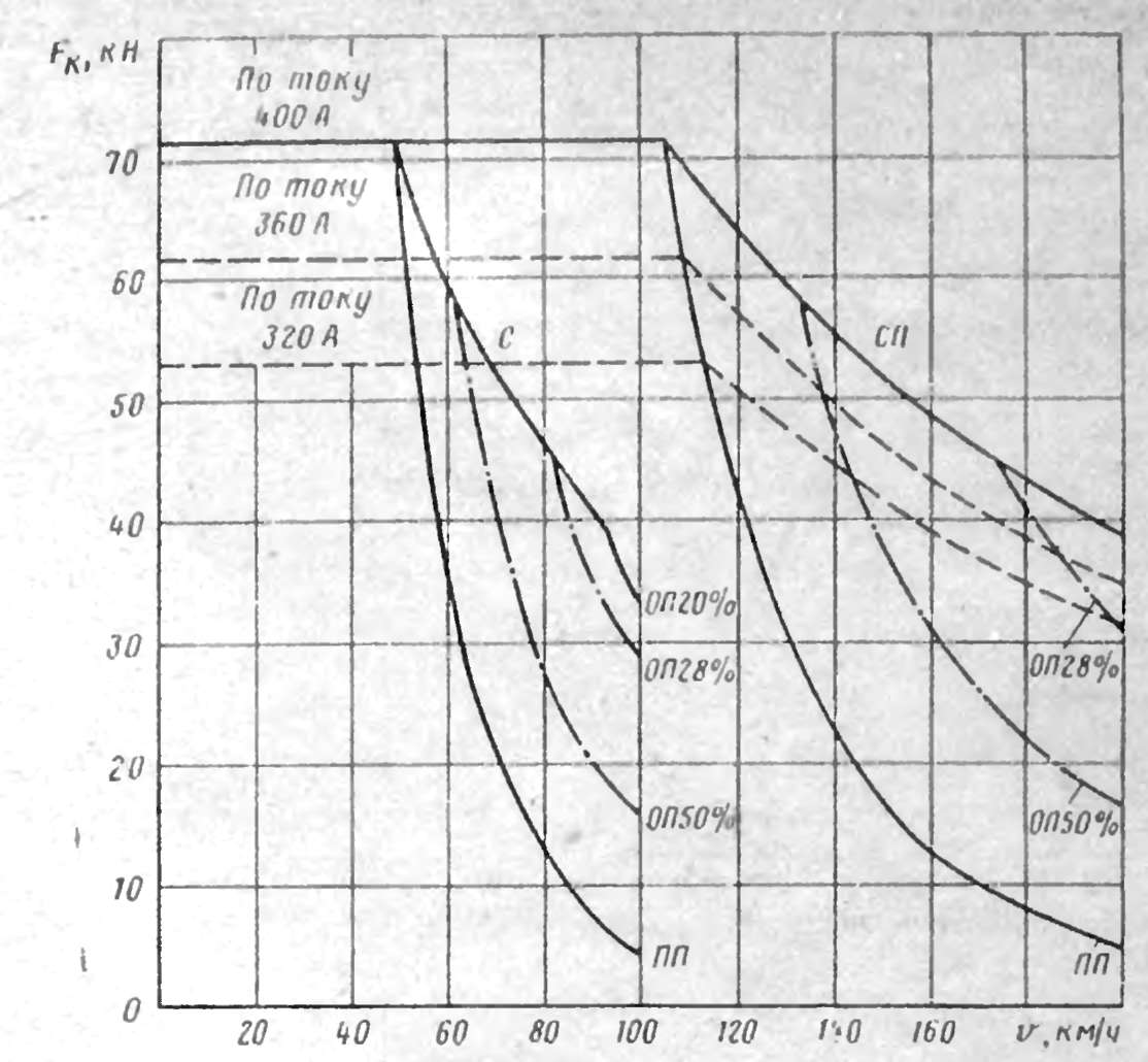 тяговых характеристик при часовом токе тяговых двигателей 300 Л и продолжительном 320 Л.