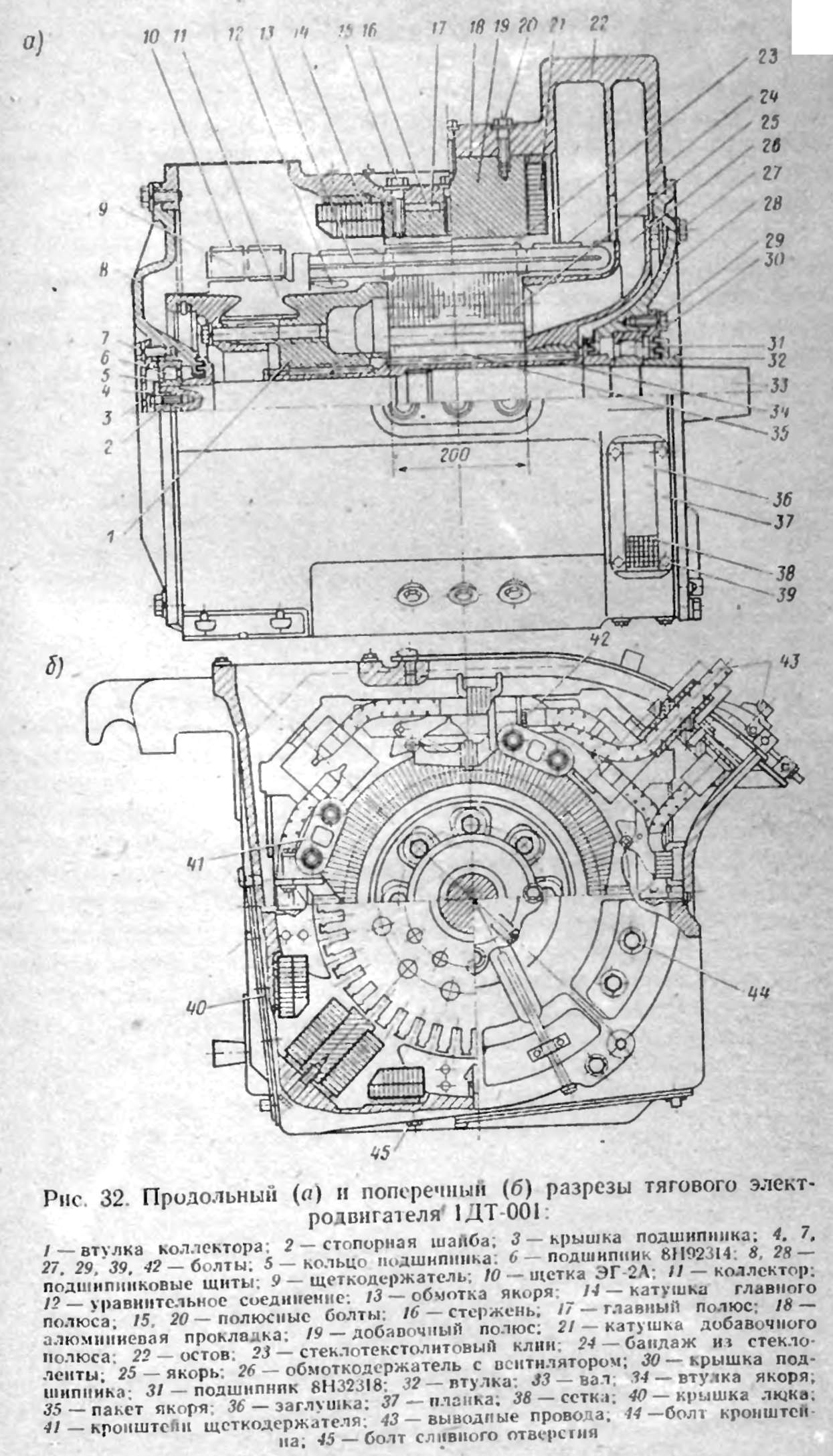 На моторных вагонах электропоезда ЭР200 установлены само-вентплируемые тяговые двигатели 1ДТ-001 последовательного возбуждения с рамной подвеской (рис. 32). Масса тягового двигателя 1320 кг.