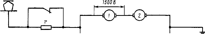 Рис. 159. Упрощенная схема прохождения тока при последовательном соединении тяговых двигателей с полностью выведенными пусковыми резисторами