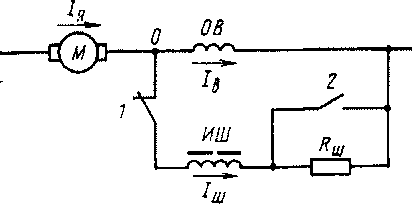 Для предотвращения указанных явлений последовательно с шунтирующим резистором включают индуктивный шунт ИШ . Индуктивность катушки подбирают так, чтобы индуктивность обмотки возбуждения была равна индуктивности шунтирующей цепи. При соблюдении этого условия переходные процессы не будут влиять на распределение токов /в и /иш и бросок тока / „ будет небольшим.