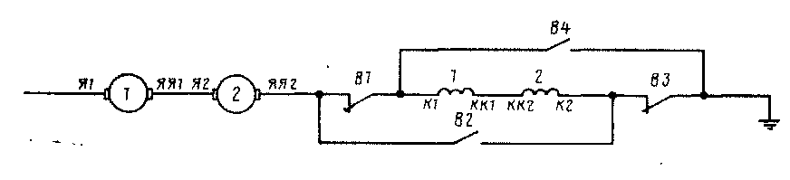 Рис. 157. Схема последовательного соединения тяговых двигателей