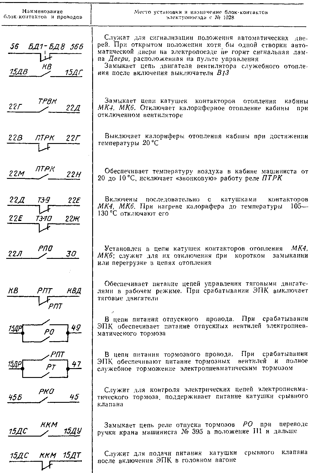 Знание локомотивной бригадой назначения электрических блокировок (табл. 5 и 6) позволяет лучше понять работу электрических цепей и принять правильное решение при возникновении той или иной неисправности.