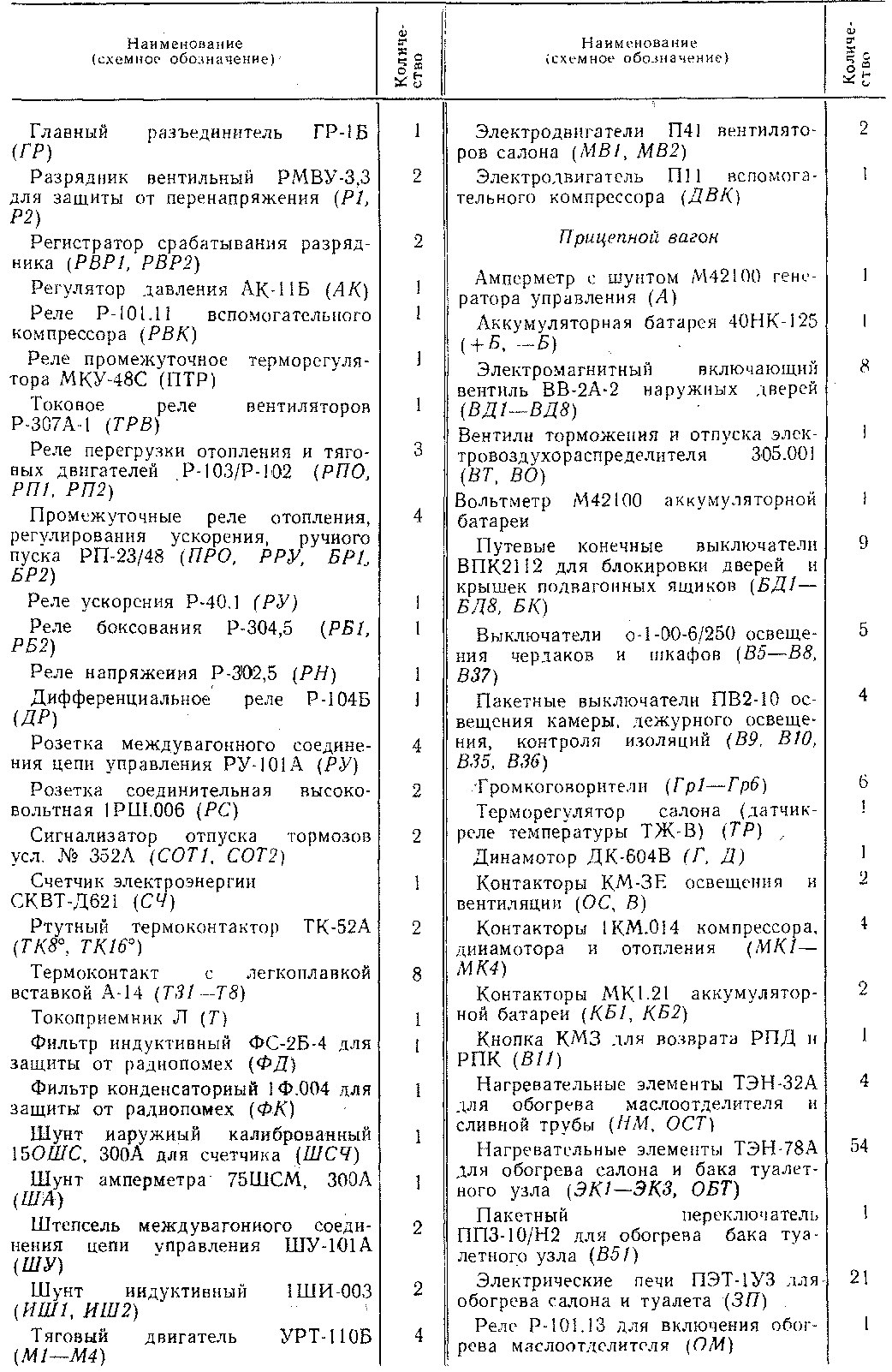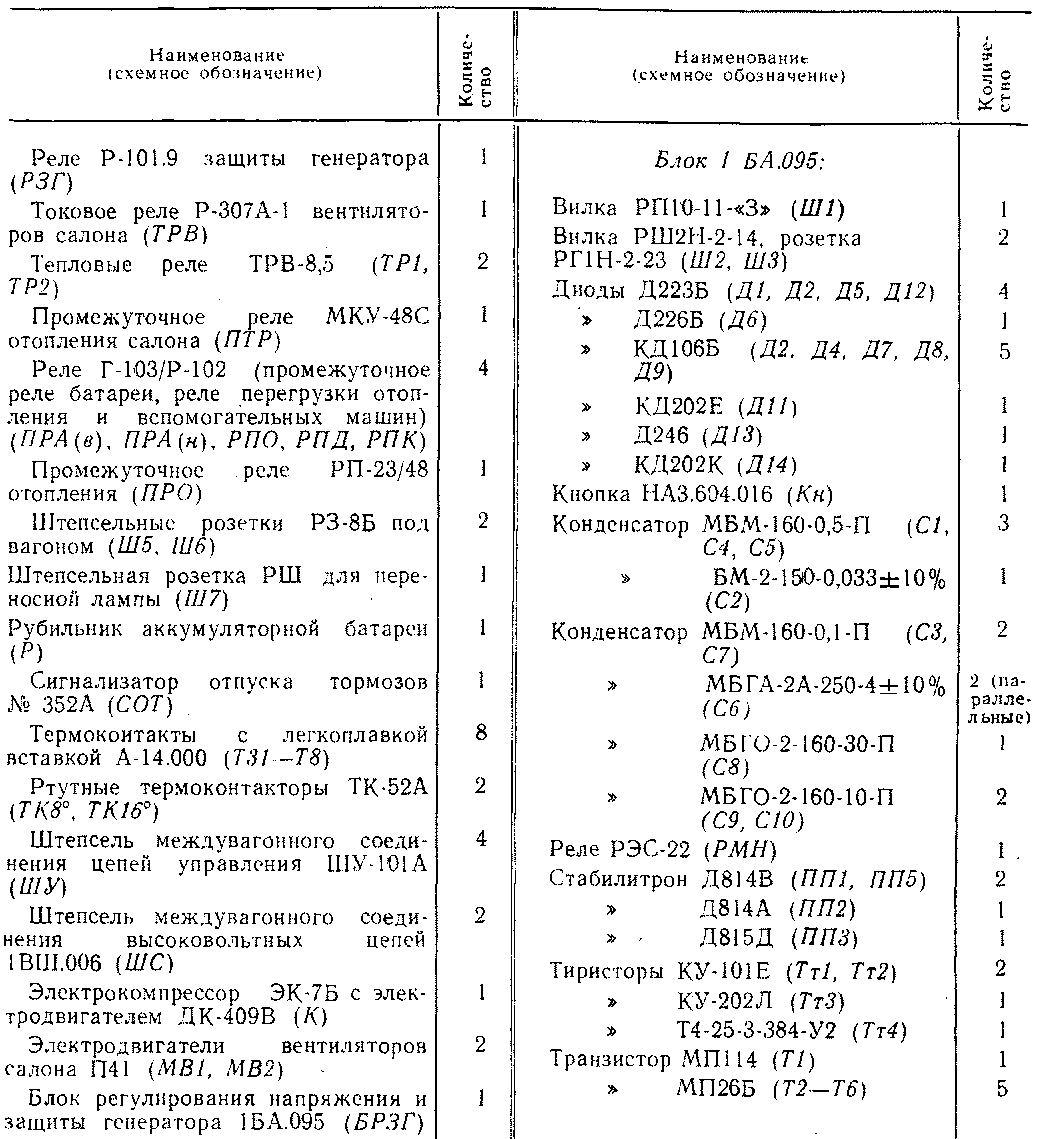 Перечень поездных и секционных проводов электропоезда ЭР2