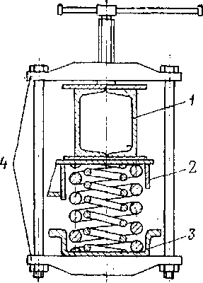 Рис. 24. Схема приспособления для замены пружин центрального подвешивания тележки: