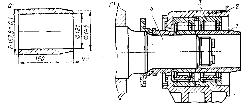 Рис. 28. Монтажная втулка (а) и схема, поясняющая ее применение (б):