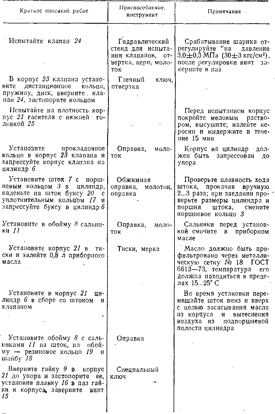 Ревизию гидравлических гасителей (см. рис. 20) проводите в соответствий с табл. 1.