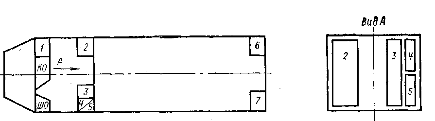 Рис. 47. Расположение и обозначение шкафов головного вагона