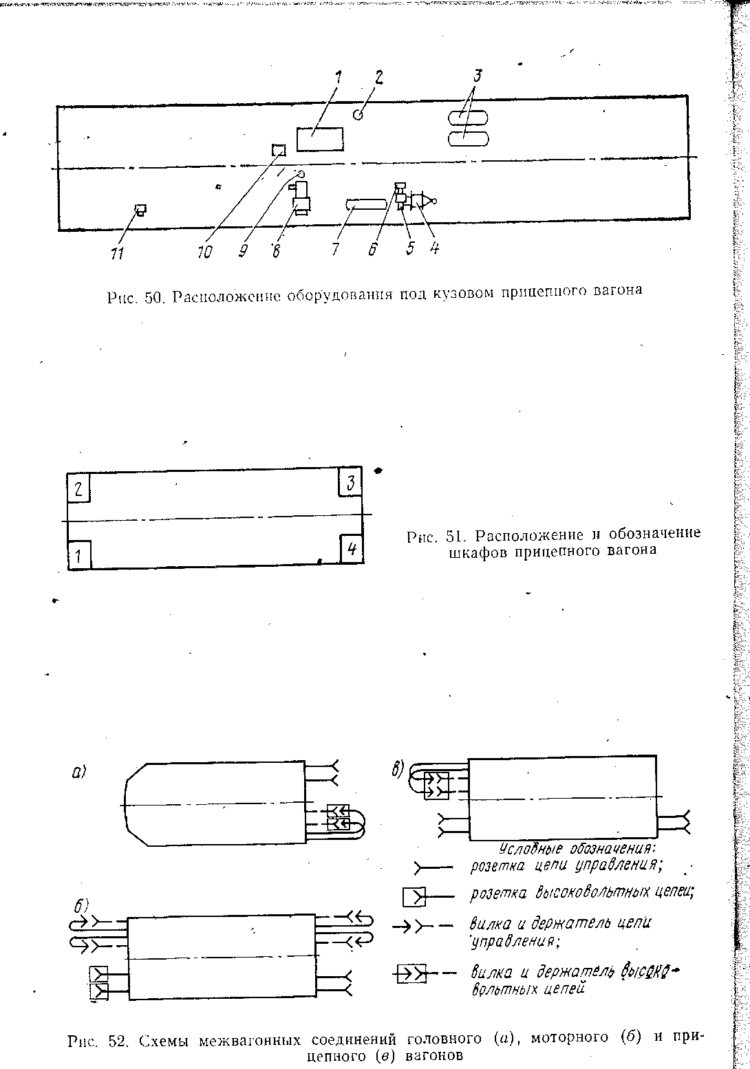 Рыс. 49. Расположение и обозначение шкафов моторного вагона