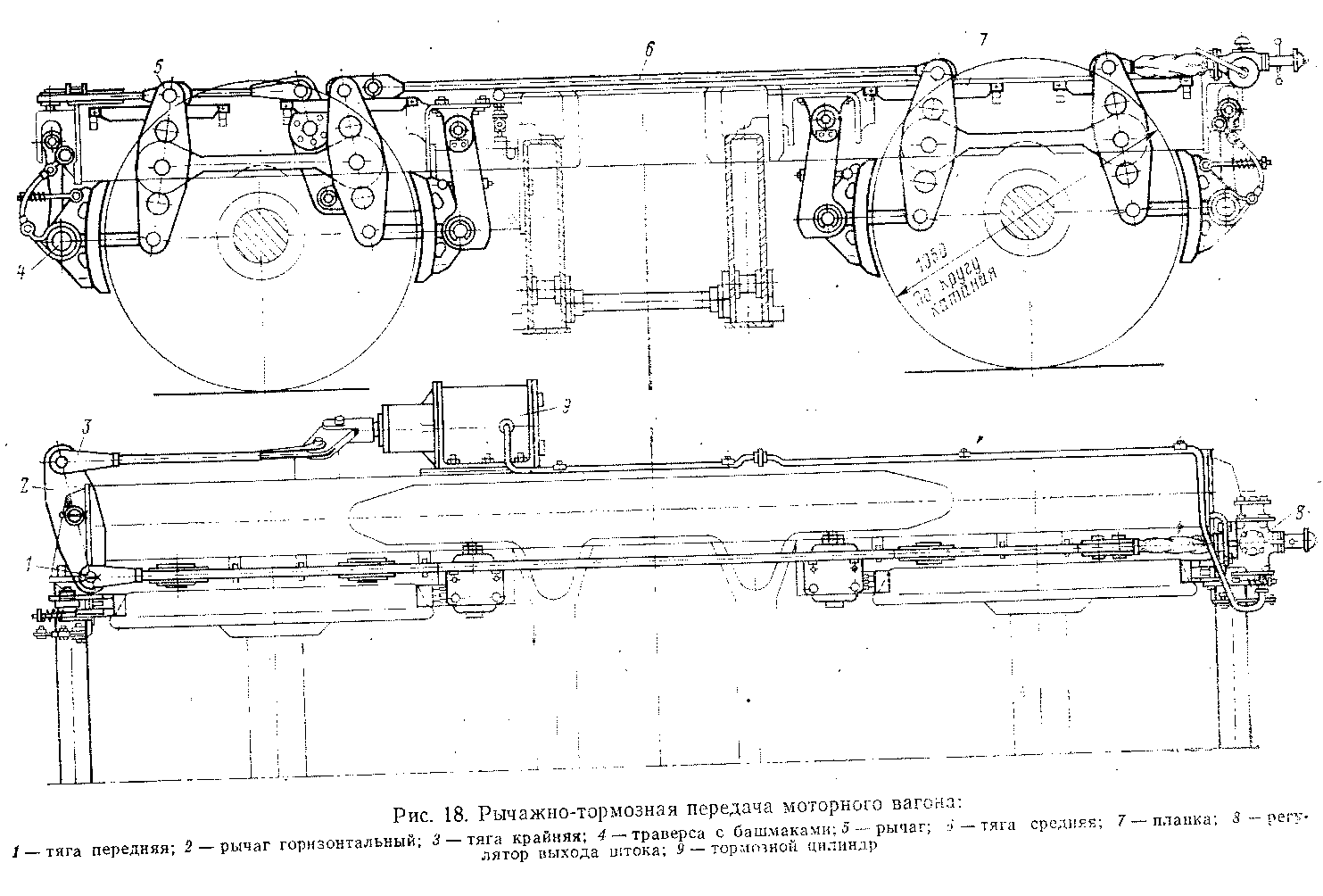 Рис. 19. Рычажно-тормозная передача головного вагона: