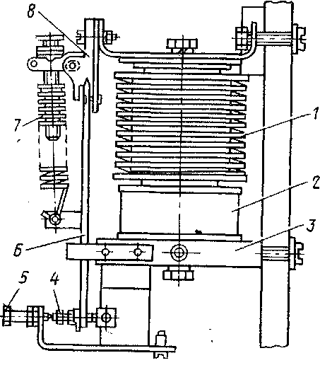 матическом упоре 8, и размыкающие серебряные контакты цепи управления 4 без притирания.