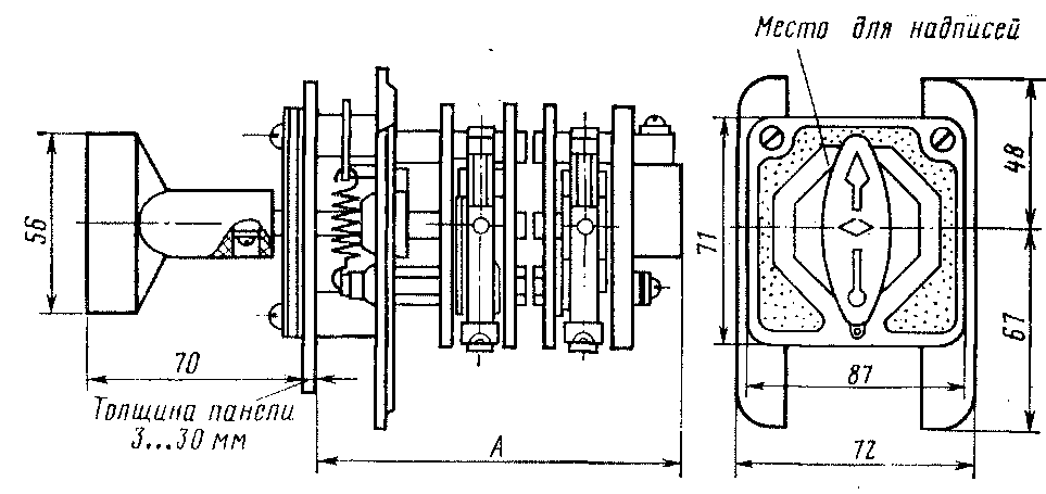 Устройство и работа. Переключатели состоят из набора секций, стянутых шпильками. Через секции проходит центральный валик, на одном конце которого укреплена пластмассовая рукоятка. Коммута-