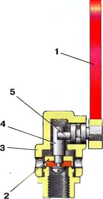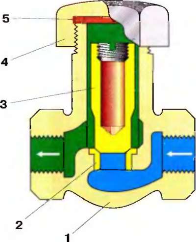 1 - корпус; 2 - втулка (седло клапана); 3 - клапан; 4 - крышка; 5 - прокладка