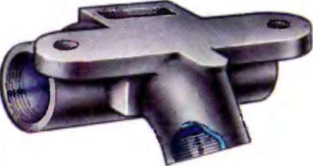 Тройник усл. № 573 (рис. 7.42) крепят к раме вагона через полку кронштейна. К штуцерам 1 и 3 присоединяют трубопровод тормозной магистрали, а к штуцеру 2 - трубу от воздухораспределителя.