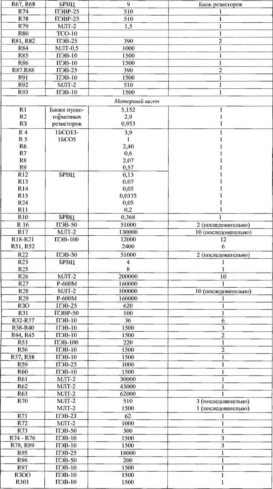Силовая схема моторного вагона, опечатки в маркировки пусковых сопротивлений, вместо R19, должно быть R18, вместо R61 должно быть R19, вместо R62 должно бызъ R20, вместо R63 должно быть R21.