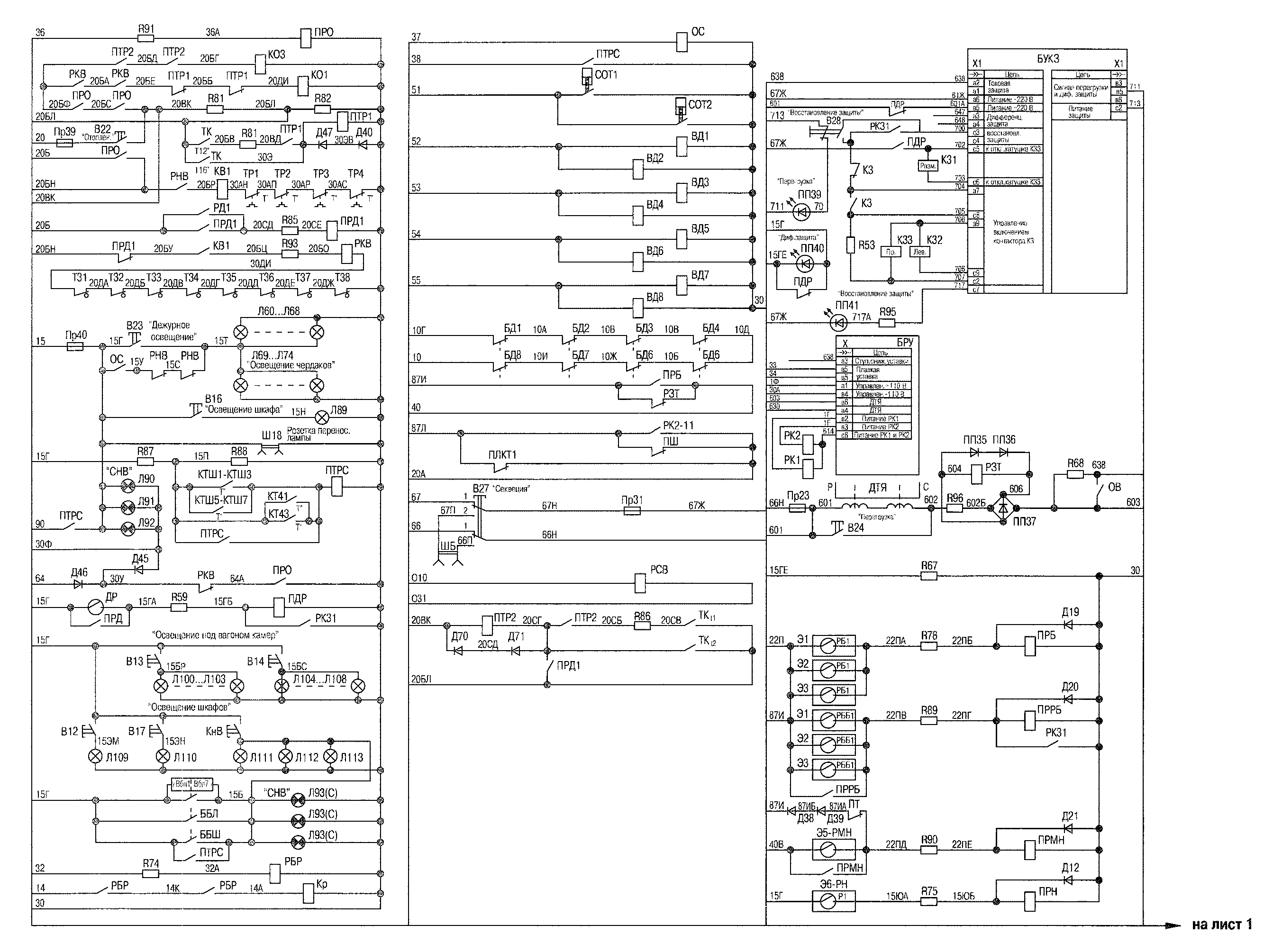 Схема принципиальная моторного вагона (лист 2), провода к блоку БРУ, вместо провода 630 должен быть 638. соелененный с проводом 638 выходящим из верхний части схемы блока. На схеме диоды ПП35 и ПП36, заменить на стабилитроны. Провода 20 и 20Б должны быть соединными между собой. Убрать неверное соединение проводов 22П и 87И. На схеме провод 87И к диоду Д38. должен быть 87ИВ. Схема принципиальная регулирования преобразователя: Не пропечатан провод от вольтдобавки заряда АБ к контакту БК. Не пропечатана точка в месте соединения диода Д5 и стабилитрона ПП2.