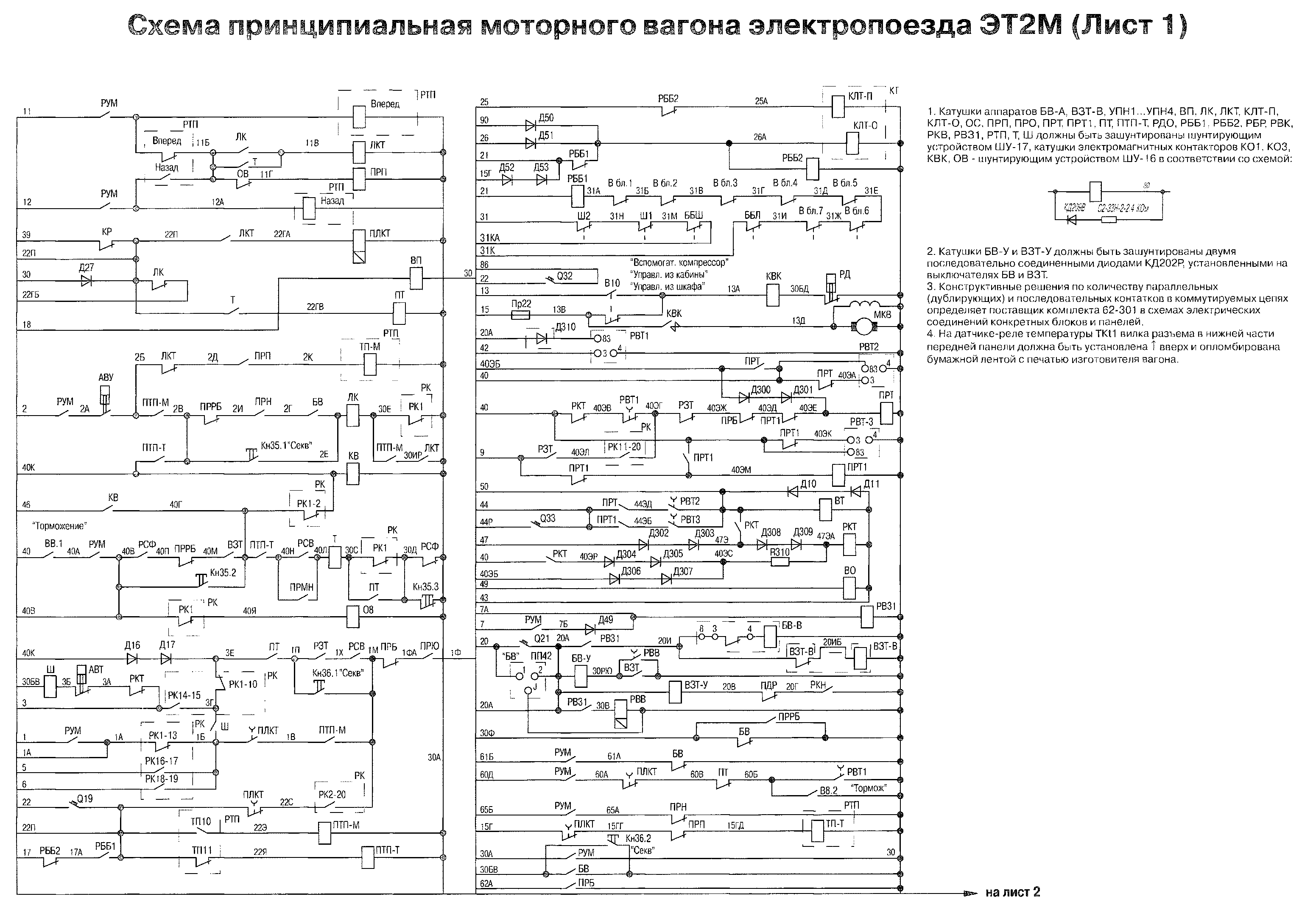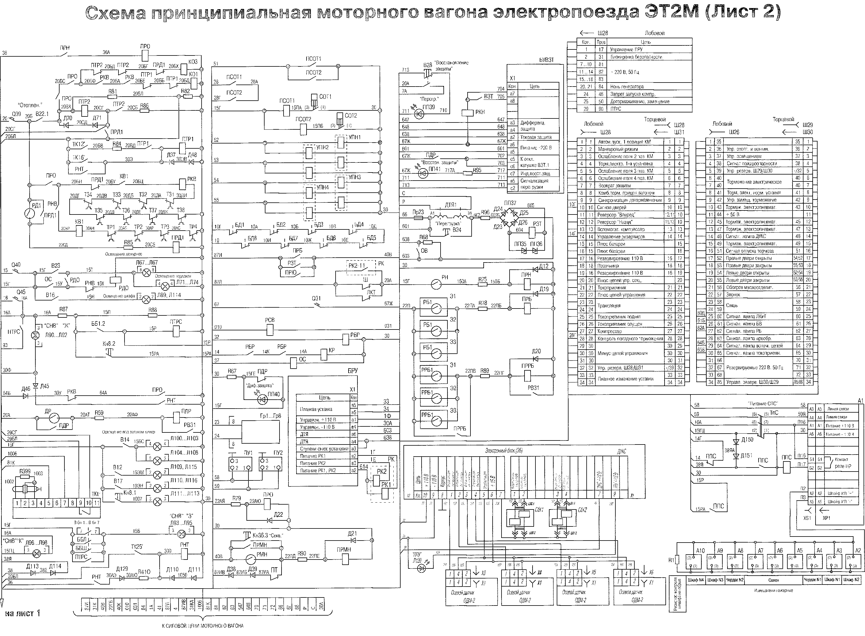 Охема принципиальная моторного вагона электропоезда ЭР2Т (Лист 2)