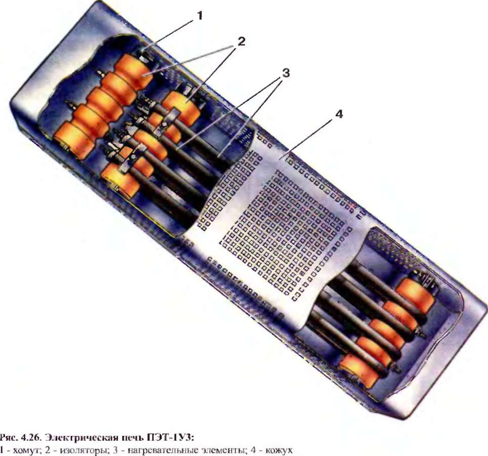 (рис. 4.26), внутри которых пропущены проволочные спирали. Для предотвращения смещения спиралей из-за вибрации трубки заполнены кварцевым песком. Нагревательные элементы укреп-