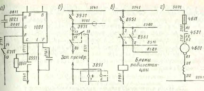 Рис. 10. Цепи питания импульсного преобразователи в режиме ЭДТ (а), преобразователя ЭПТ (б), радиостанции (в), двигателя кондиционера (г)