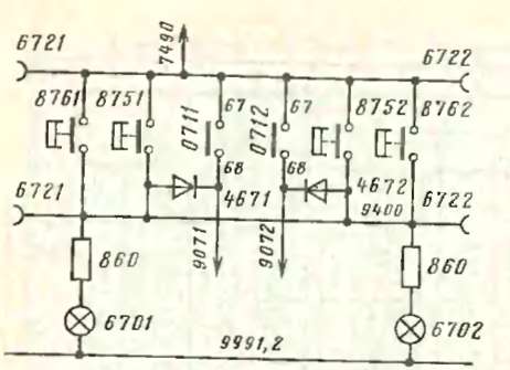 Рис. 40. Цепи питания сигнальной лампы 670 отпуска тормозов на электровозах с № 76