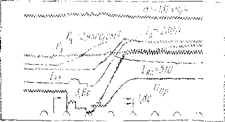 Рис. 22. Осциллограммы процесса отпуска реостатного тормоза при срабатывании скоростного регулятора