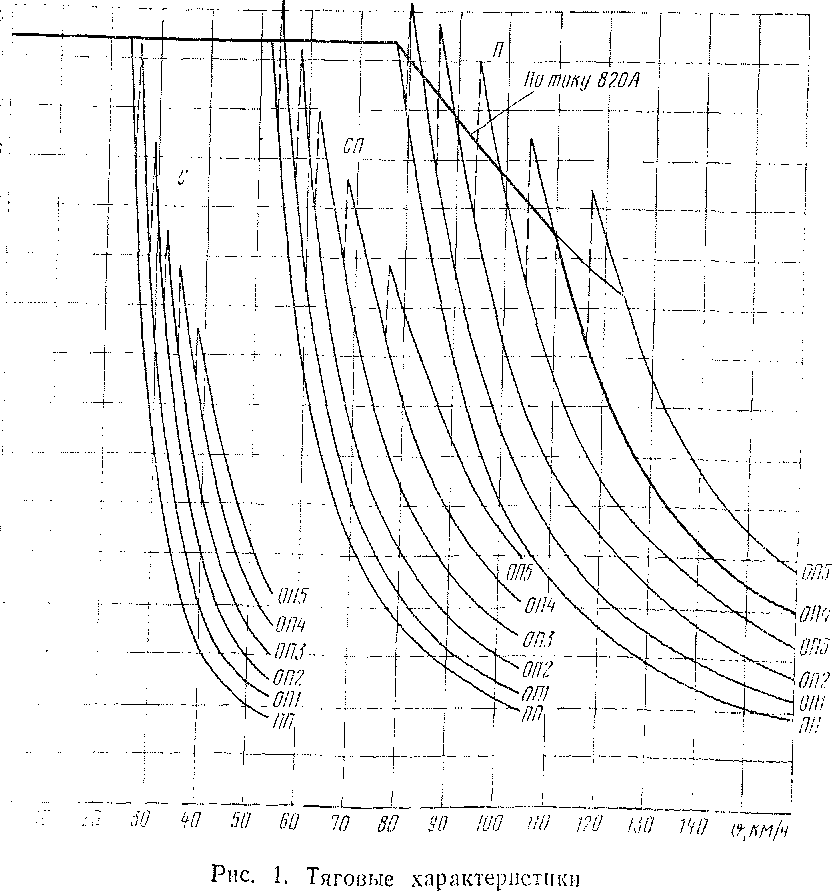 Тяговые характеристики электровоза, выражающие зависимость силы тяги от скорости, показаны на рис. 1.