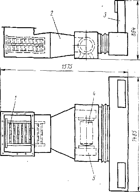 На электровозах ЧС2Т-945-И024 установлена замкнутая система отопления кабин машиниста (рис. 88). В нее входят высоковольтный электронагреватель 1, мотор-вентилятор 4 типа М2004 с двумя крыльчатками 5, расположенными по обоим концам вала двигателя, шахты 3 забора воздуха, патрубки с регулируемыми заслонками для нагретого воздуха и воздухопровод 2. Вся система смонтирована под полом кабины и доступ к оборудованию возможен только после вскрытия панелей пола и крышек люков на кузове электровоза. Холодный воздух поступает через две шахты забора воздуха, установленные на высоте 400 мм от пола по обеим сторонам входной двери в кабину, и прогоняется вентилятором через электронагреватель, откуда подогретый воздух выходит через патрубки в полу передней части кабины.