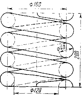 Цилиндрические пружины изготовлены из стального прута диаметром 40 мм (рис. 115), навитого на цилиндр диаметром