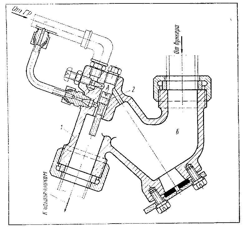 Между корпусом 6 клапана песочницы (рис. 149) и крышкой 2 зажата резиновая диафрагма в, над которой расположен
