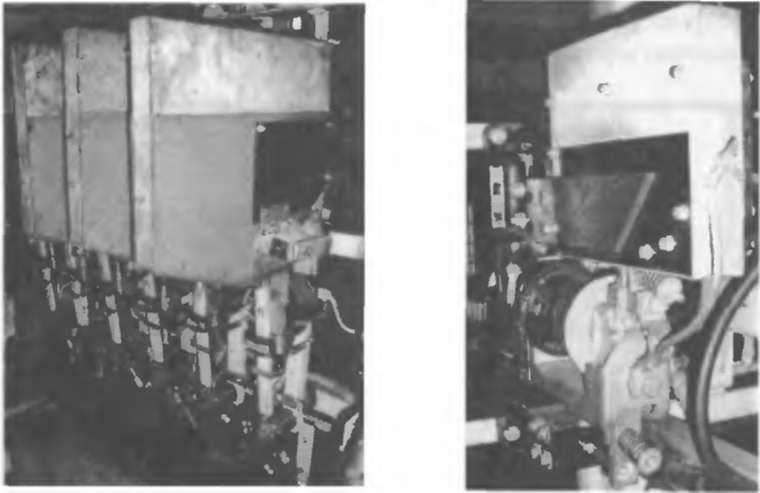 Подключение ступеней пускотормозных резисторов производится реостатными контакторами, номинальный ток которых 630 А. Подвижный контакт такого контактора имеет один мостик замыкания, а у дугогасительной камеры отсутствует деионная решетка.