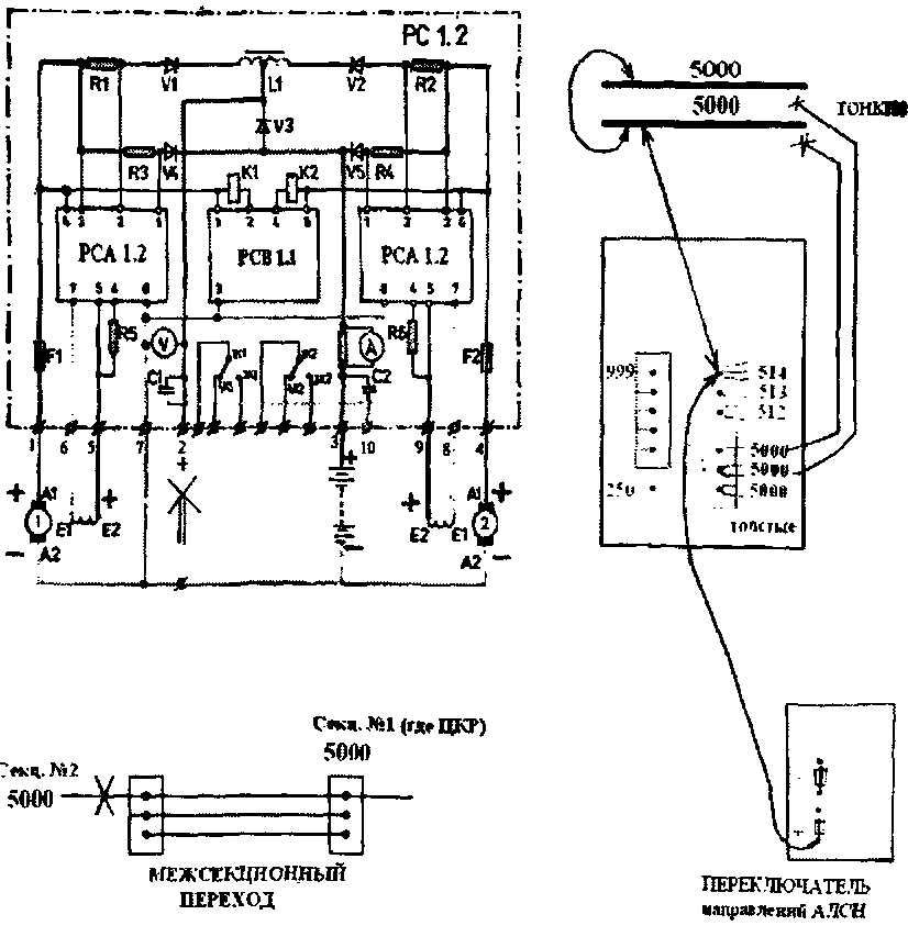 При отсутствии цепи А.Б. в неисправной секции необходимо проверить включение ВЗВ 566 данной секции и исправность предохранителей А.Б: